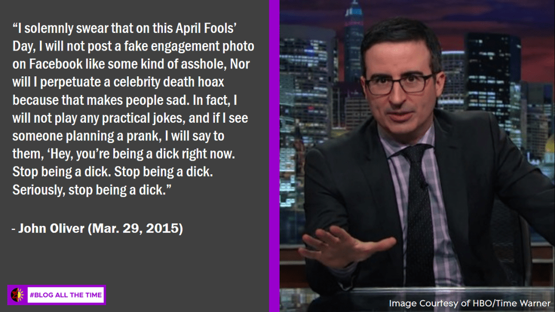 It’s almost that time of year again, April Fools’ Day. If you’re not a fan of the holiday, take the No Prank Pledge, courtesy of John Oliver of Last Week Tonight.