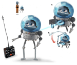 there was an earlier iteration of this character that was not robotic, but a fish in a tank sitting atop an actual gorilla body. as hilarious as it was, it did come across a little morbid, so we opted for a robot body pasted with fake fur. (copyright Dreamworks Animation)