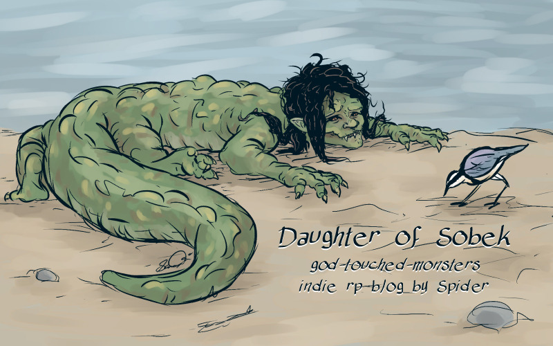 (( my Egyptian god oc. I love Egypt so much. Daughter of the crocodile Nile god Sobek. Shes a mercroc? Werecroc? She can transform back and forth but is a croc at heart. ))